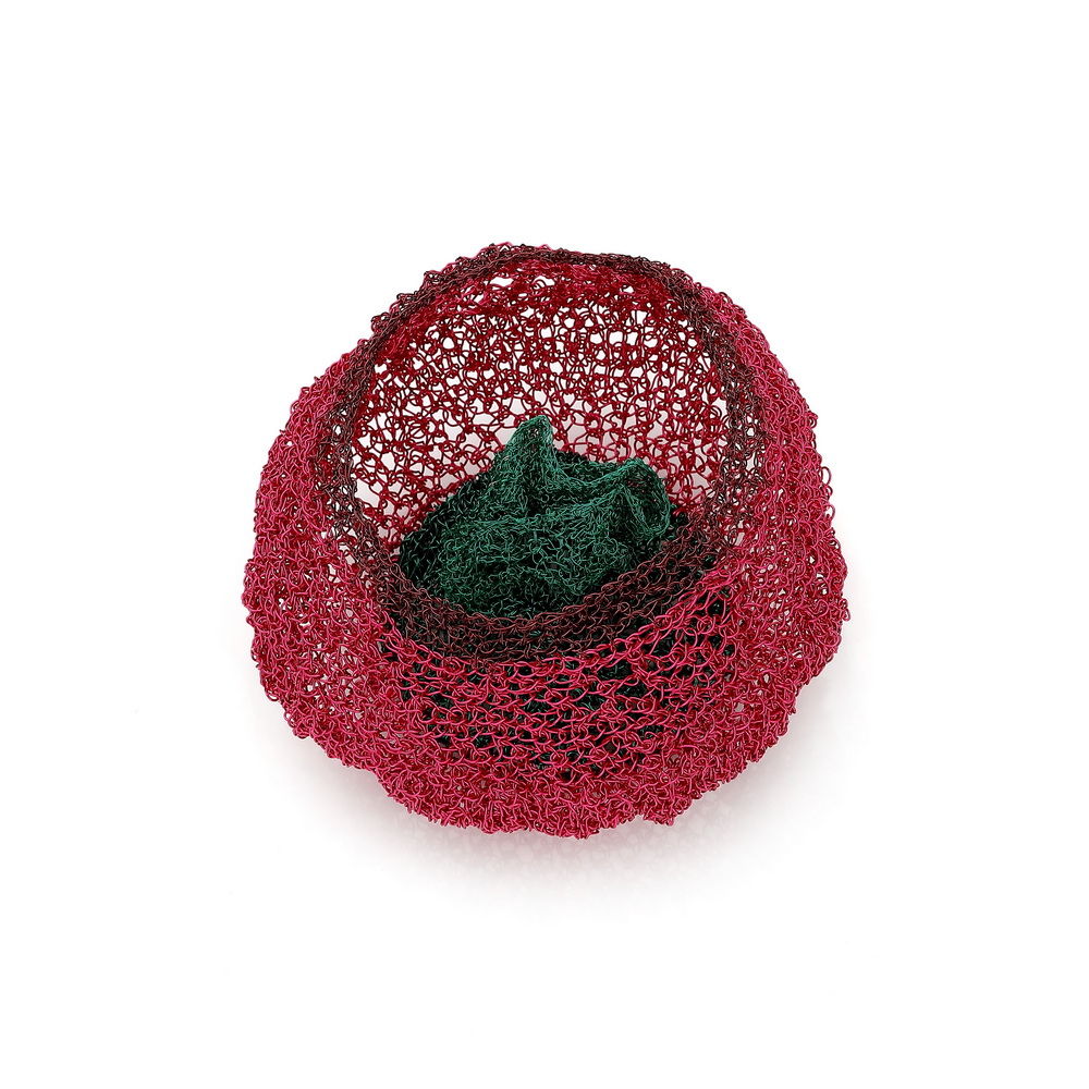This jewellery moves deeply. And just as we wear it on the surface of our bodies, so we can wear it on our 'inside' - its message, the feelings it inspires and the memories or experiences it evokes. Crocheting in metal thus becomes as brave a challenge as it is to let ourselves or someone else discover a mysterious corner of our soul. The use of expressive colours, for the first time present in Gazda's work, may be an attempt to show the spectrum of the viewer's own states and moods. Both experiments require precision, courage and attentiveness on the part of the artist and the viewer. "How often do we misjudge the events, emotions, behaviour or state of mind of the people around? Even of those closest to us? How often do we fail to see, or simply refuse to see, the fear, sadness or even the cry for help hidden under a smile and the banal I'm fine phrase?