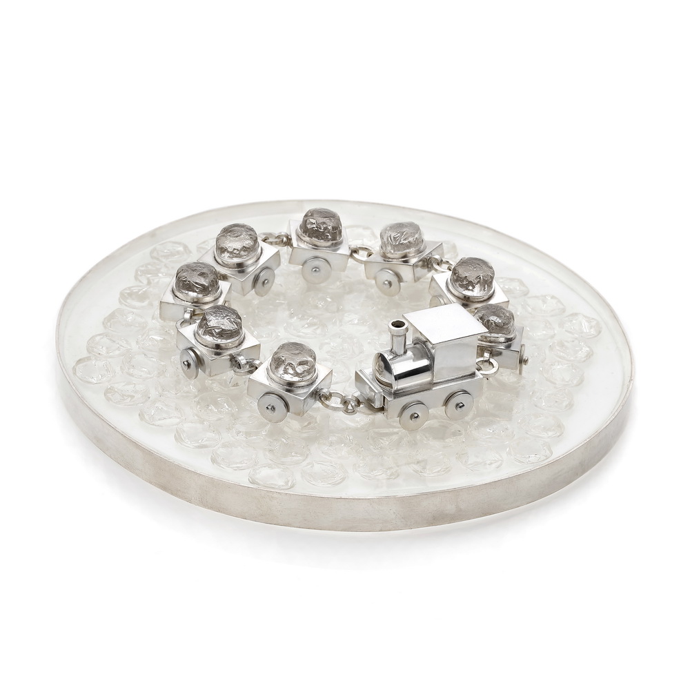 Bubble Train object with bracelet, silver, artifical resin, plastic 2022