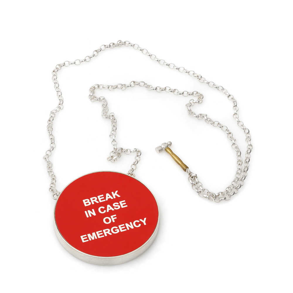 Protect the Reveal #V brooch, alumide, rope, plexiglass, silver, silverplated stainless steel, 2022