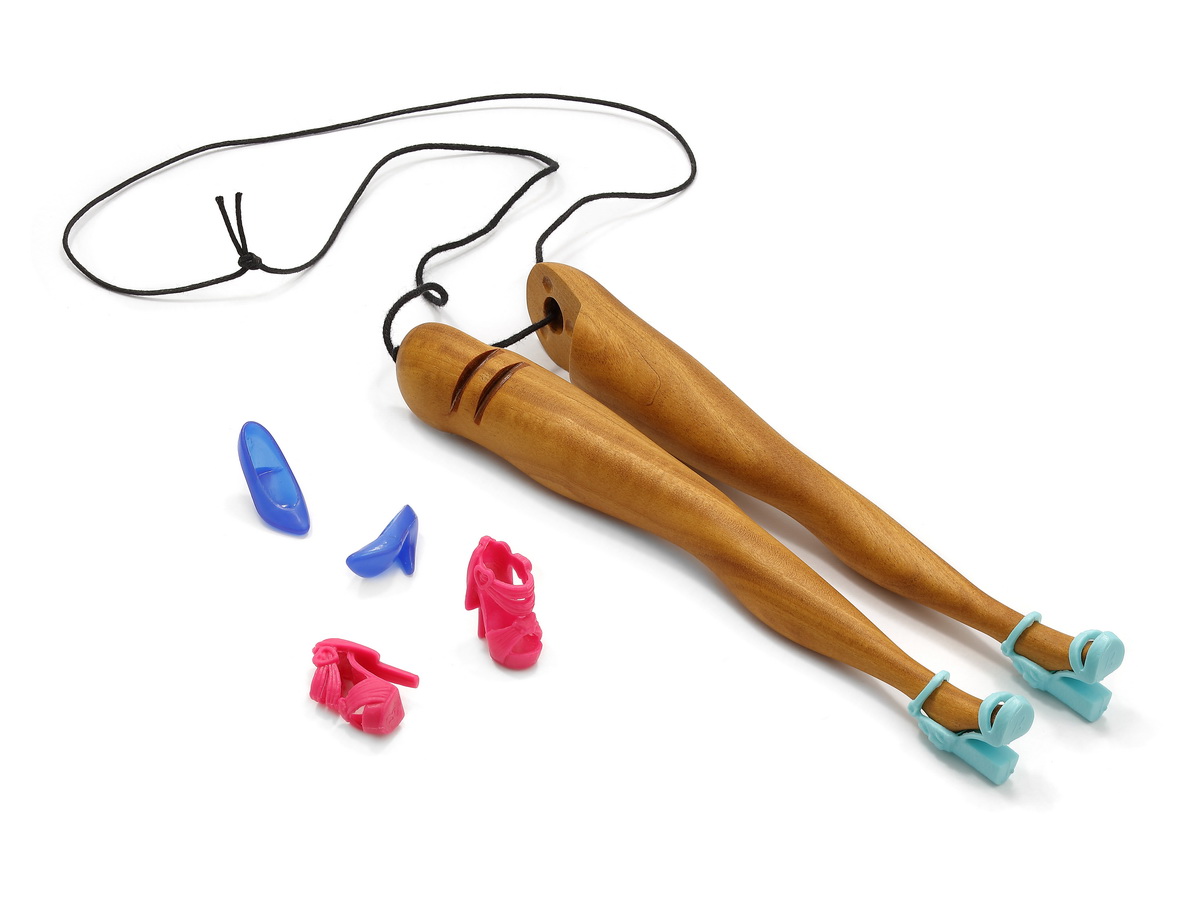 Legs, found wooden table leg, string, plastic, Barbie shoes, 180x25x20 mm, 2026